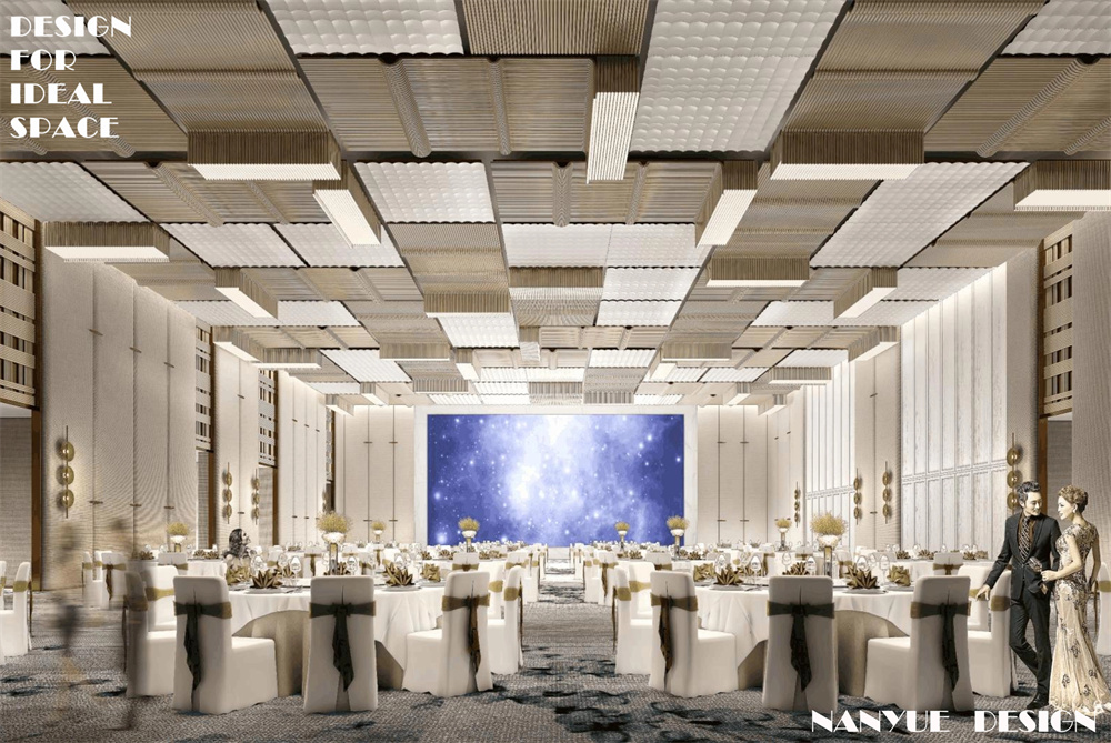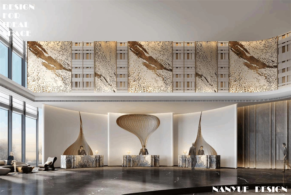 成都日航酒店,通過點線面排列組合的設計手法,實現空間感受的整體塑造,賦予酒店獨特的空間記憶點,運用柔和的色調,米白、金色和深棕,營造出自然溫馨而高貴的典雅氛圍,大堂造型獨特的藝術裝飾,成為步入空間后的視覺中心,宴會廳多種塊面分布組合增強層次感,構筑具有現代感又充滿貴族氣息的奢華酒店空間。
