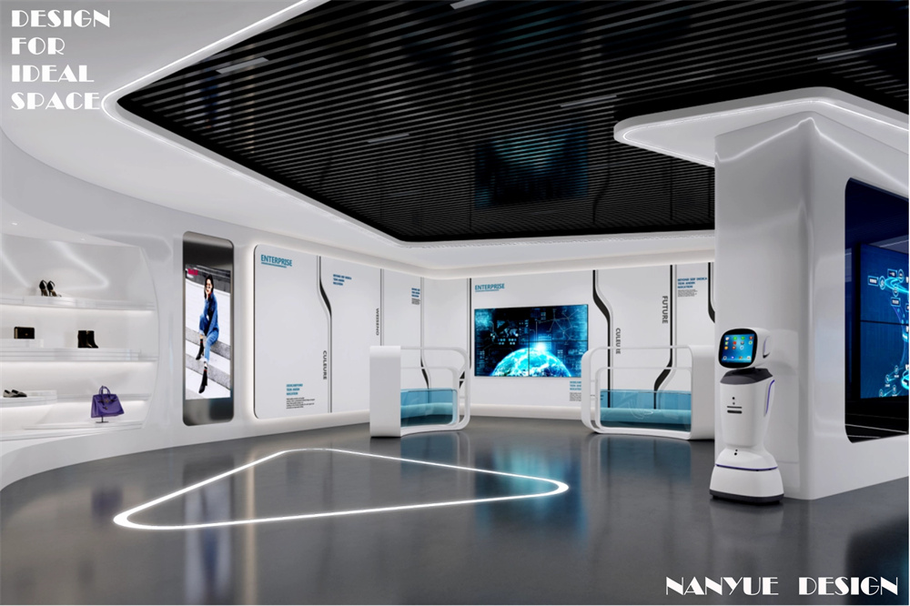 深圳龍華百麗集團數字大部屋,運用流線感設計營造豐富的視覺層次,以純白順滑的圓潤曲面盡顯空間美感,led燈光映射于空間中如同數據般流動,打造新的動線布局引導參觀者情緒起伏,企業形象、產品、數據可視化生動展示,讓觀者置身于數據世界全面了解企業。